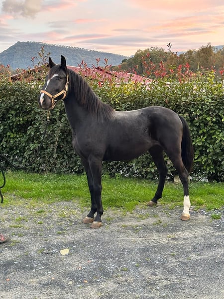 Potro lusitano negro de 2.5 años. Excelentes líneas de sangre. Muy buen movimiento para doma. El caballo se encuentra en España.