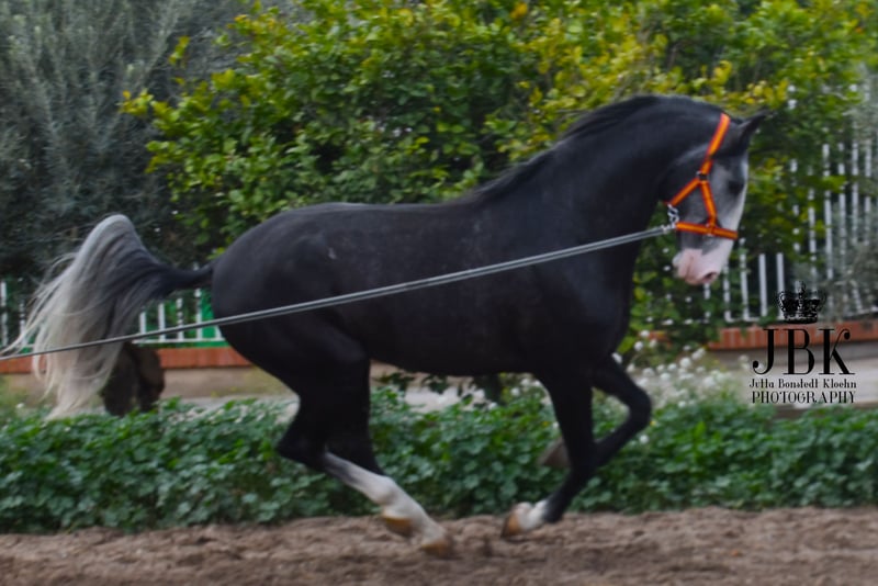 Sueño wurde 2022 geboren. Er ist in den Grundgangarten sehr gut geritten, und zeigt viel Talent für höhere Aufgaben. Sein Charakter ist absolut ehrlich. Er hat ein sehr gutes Nervenkostüm. So leicht erschüttert ihn nichts. Nach der Arbeit im Viereck geht er so auch mit seinem Reiter relaxt ums Eck. Sueño entstammt sehr guten Blutlinien und ist ein rein gezogener Lusitano.