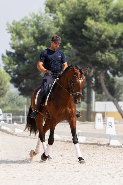 On behalf of our client: Rio da Norinha – a dressage horse for the highest standards! Absolute rideability paired with willingness to perform and three excellent gaits make Rio a horse in a class of his own! Rio has enjoyed a classical training and already masters the half-pass, jumps first series changes, piaffe and pirouette! Everything comes easily to him and he is always highly focused! He already has competition experience and always concentrates on his rider, even in unfamiliar surroundings! Even in a large, mixed stable with 180 horses, Rio shows no stallion behaviour whatsoever! The horse comes from the very best breeding and has a clear head and a great character. Of course, Rio has been fully tested with all X-rays and is also free of piroplasmosis. He has full PSL papers with a top pedigree and comes from the best breeding! Location: Spain – transport can be arranged worldwide.