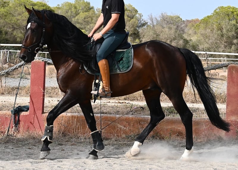 Ce hongre Pura Sangre Lusitano, né en 2021 et avec Livro Azul (document original des Lusitaniens pur sang du Portugal), est un véritable trésor au grand cœur. Il suffit de regarder dans ses yeux doux pour ressentir immédiatement à quel point il est affectueux et chaleureux. Malgré son jeune âge, il est incroyablement posé et calme. À chaque instant, il souhaite plaire et bien faire ! De plus, il est vraiment intrépide et un véritable gentleman, que ce soit en présence de juments ou d'autres étalons. Le jeune cheval est monté avec un mors à double brisure et se déplace sans problème pieds nus. Il apprend déjà à s'étirer correctement et accepte bien le contact avec la main, ce qui le rend facile à monter. Son mouvement est également définitivement intéressant pour les cavaliers de dressage ! Son élevage a été idéal, car sur de nombreuses hectares, il a pu simplement être un cheval dans un groupe d'étalons, avec plus de 30 jeunes étalons ! Cela se ressent immédiatement, car il est mentalement très clair, intrépide, ouvert et doux. Il y a une option de castration sur place, bien qu'il n'ait définitivement pas de manières d'étalon. Actuellement, il mesure 165 cm et continuera certainement à grandir en hauteur et en taille ;) Avec son tempérament irréprochable, il deviendra avec un peu plus d'entraînement un cheval idéal pour toute la famille. Un test de piroplasmose négatif (sans piro) est également disponible. Le prix pour sa qualité est absolument juste ! Actuellement, il se trouve à Majorque ! Des vidéos et son pedigree sont disponibles sur demande. Je peux organiser sur place une visite vétérinaire, une castration, un débourrage, un transport ou même votre voyage si vous souhaitez venir le voir en personne. Pour plus de détails, n'hésitez pas à consulter ma page ou à en discuter. Salutations d'Espagne !