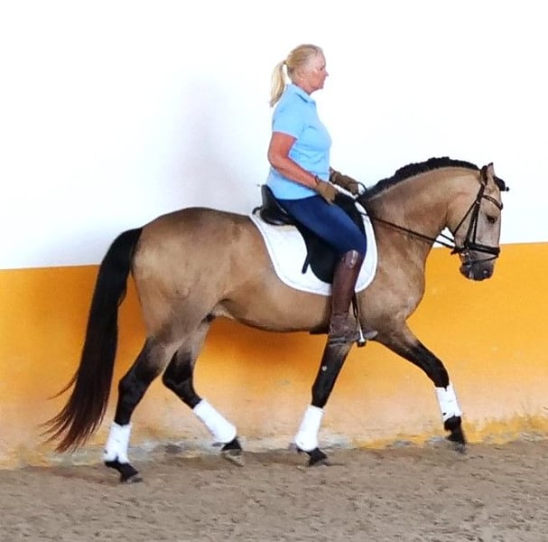 5 Jarige Lusitano hengst (v. Almansor) te koop. Geschikt voor dressuur & Working Equitation. Drie goede gangen & zeer comfortabel om te rijden. Paard met veel talent. Te bezichtigen regio Amsterdam.
