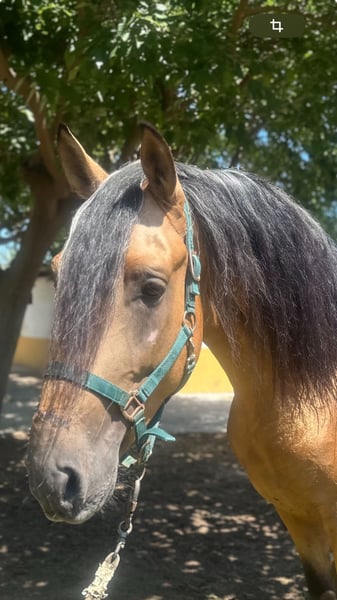 **Ad for sale: Semental Noble Lusitano en venta** Estamos ofreciendo un hermoso semental Lusitano para la venta. - Raza:** Lusitano - Sexo:** Semental - Año de nacimiento:** 2020 - **Color:** Buckskin - Altura:** 160 cm - Disciplina:Doma Clásica Este impresionante semental impresiona con su aspecto elegante y su naturaleza amistosa. Ha sido montado en un nivel básico y tiene confianza en los 3 aires. Es particularmente intrépido en el campo. Si está interesado o desea más información, no dude en ponerse en contacto con nosotros.