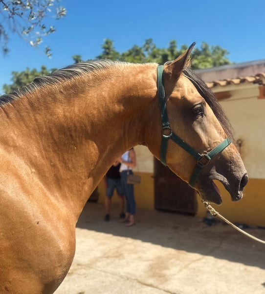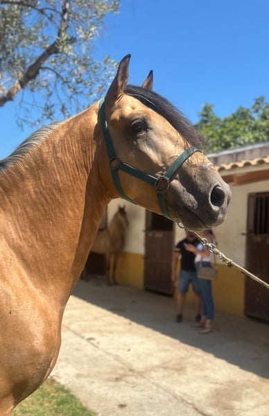 **Ad for sale: Noble Lusitano stallion for sale** We are offering a beautiful Lusitano stallion for sale. - Breed:** Lusitano - **Sex:** Stallion - Year of birth:** 2020 - **Color:** Buckskin - Height:** 160 cm - **Discipline:** Dressage This impressive stallion impresses with his elegant appearance and friendly nature. He has been ridden on a basic level and is confident in all 3 gaits. He is particularly fearless in the field. If you are interested or would like further information, please do not hesitate to contact us.