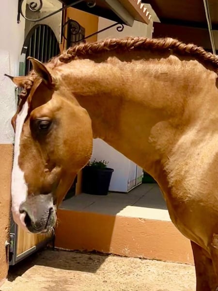 Het gouden paard 💛 Oro is een piro-vrij 7-jarig Lusitano hengst met een hoogte van 165 cm en een zeer zeldzame genetische kleur, hij is een red dun en beschikt over volledige APSL papieren. En niet alleen zijn goudglanzende kleur springt in het oog, ook zijn hart is van goud. Deze paard heeft een zo groot hart en een nobele ziel dat je meteen verliefd op hem wordt. Vriendelijk, kalm, geduldig en zeer goed opgeleid. Een compleet droompaard. Absoluut veilig, betrouwbaar en een paard om van te genieten. Oro is een perfecte keuze voor working equitation, shows of klassieke dressuur. Hij heeft normale bewegingen. Hij doet zijgangen, vliegende wissels en piaffe. Hij staat in Spanje 🇪🇸 Meer informatie via PM of WhatsApp 00491786997334. Jasmin van Top-Lusitanos🤗