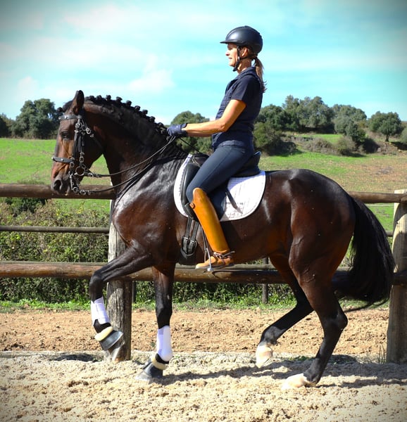 Es cómodo de montar y puede ser montado prácticamente por cualquiera, también apto para jinetes mayores, ya que no tiene moggins, es trabajador y suave al sentarse, y además de ser bonito y expresivo, tiene unos movimientos preciosos, un carácter fantástico y un buen tamaño. Se le ha montado con seguridad y ahora está empezando el entrenamiento para clases más difíciles.