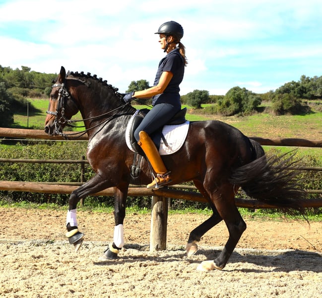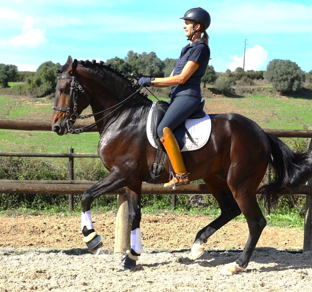 He is comfortable to ride and can be ridden by practically anyone, also suitable for older riders, as he is not shy, hard-working and soft to sit, and apart from being beautiful and expressive, he has beautiful movements, a fantastic character and a good size. He has been ridden safely and is now starting further training for more difficult lessons.