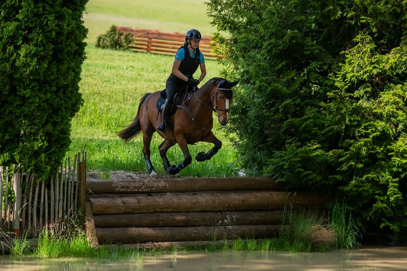 For sale is a beautiful 7-year-old Anglo-Arabian gelding. Banari impresses not only with his appealing appearance but also in handling, thanks to his friendly and people-oriented nature. He is excellently suited for eventing and has already proven himself up to the L class, despite his young age. He was part of the Trakehner Eventing Initiative 2024, as well as in the 8-member team in 2024 and 2025. I bought him when he was four years old and have trained him myself up to this day. Despite his high-bred appearance, he is very balanced. Among other things, he goes out calmly on trails, whether alone, in a group, with a lead horse, or as a lead horse. He has always performed his job very well even with less experienced riders. Loading, traveling in a trailer, and the atmosphere of competitions do not faze him. He is familiar with open stabling and mixed groups. Currently, he shares a box with another gelding and spends his days in the pasture. Since we unfortunately haven't really found our rhythm at competitions this year, I am now looking for a new home for him. Banari is in perfect health, and X-rays from 2022 show no findings. He is, of course, regularly vaccinated and has had his teeth done. He also has an FEI passport. Currently, he is shod all around, but since he has good hoof quality, I usually keep him barefoot in winter. I am not selling him as a pure beginner's horse due to his age. This is not an urgent sale, and no dealers! If you are interested or have further questions, please feel free to contact me. Viewings and trial rides are possible by arrangement for a fee of €30.