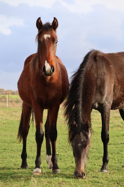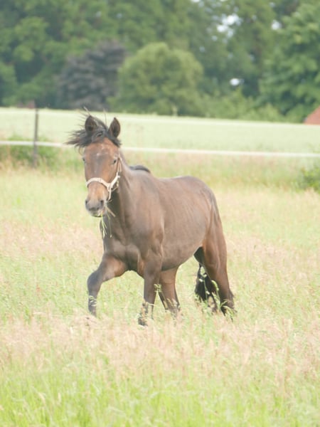 Extra vom Hartungshof, geb.am: 14.05.2024 ist bekam seinen Namen, weil er als neugeborenes Fohlen bereits extra chic, extra frech und extra eigenwillig war. Inzwischen als Wallach ist er immer an extra Streicheleinheiten interessiert und zeigt sich extra motiviert damit man Zeit mit ihm verbringt. Ausgestattet mit einer Gangveranlagung zu Marcha Batida und Marcha Picada und einem ansonsten auch extra gutem Gangwerk wird er einmal ein Freizeitpartner der Extraklasse werden, da bin ich mir sicher. Wenn er farbmäßig nach seiner Oma und seiner Mutter kommt, wird er in einigen Jahren nicht normal "ausgeschimmelt" sein sondern Fliegenschimmel. Und Extra wird für einen Mangalarga Marchador sehr groß werden (ausgehend von Vater, Mutter und Vollgeschwistern). Er hat wie alle unsere Fohlen das Fohlen ABC gelernt und ist ist gegen Tetanus, Influenza und Herpes schutzgeimpft. z.Zt. lebt er in einer etwas 20-köpfigen Pferdegruppe im Alter zwischen 6 Monaten und 29 Jahren mit Offenstall, Weidezelten, Paddock und großer Weide. Hier wird fleißig mit dem "jungen Gemüse" gespielt und die "Erwachsenen" achten darauf, dass man nicht zu übermütig wird. Auch von Extra gibt es nicht nur sehr wenige Fotos und kein Video, weil meine Gesundheit es sowohl in 2024 wie auch in 2025 schwierig gemacht hat zu fotografieren und z.zt. ist er auch dem Alter entsprechend "nicht Fisch, nicht Fleisch".