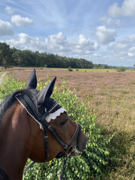 Henry ist seit 8 Jahren mein treuer Begleiter. Er wurde in der Dressur bis L-Niveau ausgebildet und bis vor einem Jahr regelmäßig geritten. Im letzten Jahr hatte er lediglich eine Reitpause ohne gesundheitlichen Grund. 2019 hatte er eine Knochenabsplitterung weshalb er nicht mehr springen sollte (kleine Sprünge steckt er zwar weg, aber ein Leben ohne Springbelastung wäre optimal). Seitdem ist er lahmfrei und gesund im Training einsetzbar. Er ist kein Anfängerpferd und benötigt eine erfahrene Hand, die ihn fair weiterarbeitet. Für reine Turnierambitionen ist er nicht geeignet – ideal wäre ein Zuhause mit Freude an Dressurarbeit, Bodenarbeit und entspannten Ausritten. Gesundheitlich ist er insgesamt stabil. Er reagiert gelegentlich mit Husten auf Staub, was sich mit nassem Heu aber gut kontrollieren lässt. Er ist Schmiede- und Verladefromm! Nur in allerbeste Hände abzugeben – Platz vor Preis