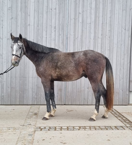 For Sale: Mecklenburg Warmblood Gelding – A promising show jumper, versatile all-rounder, or partner for advanced leisure riding. We are offering an elegant, blood-typed Mecklenburg Warmblood gelding, born in 2023. This handsome grey impresses with his friendly nature and striking appearance. Standing at 16.1 hh, he provides the perfect size for ambitious riders seeking a versatile jumper, eventing horse, or high-quality leisure horse for the future. The young gelding already shows considerable talent in jumping and has a promising basic training background (groundwork, lunging, free jumping). His agility, jumping ability, eagerness to learn, and lovable character make him an ideal partner for sport and leisure. His dam has received 9s in free jumping at the mare performance test. The horse is healthy, regularly vetted, and ready for a new challenge. He was raised in our herd and lives in an active stable with 20 horses. He is familiar with the feed automat, farrier, grooming, etc. Please feel free to contact me for more information or to arrange a visit. Get to know this promising young horse! Current X-rays available from December 2025. Castrated in December 2025.