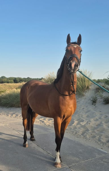Dieser bildschöne 4-jährige Wallach überzeugt durch seine hervorragende Abstammung – gezogen über Balout du Roet x Lancer II – sowie durch seinen ehrlichen, ausgeglichenen Charakter. Er zeigt sich im täglichen Umgang wie auch unter dem Sattel stets super brav, unkompliziert und zuverlässig. Für sein junges Alter ist er erstaunlich ruhig und nervenstark – geht bereits alleine ins Gelände und zeigt sich dort unerschrocken und gelassen. Unter dem Reiter arbeitet er motiviert mit, möchte immer alles richtig machen und hat dabei keinerlei böse Absichten. Erste Sprünge unter dem Sattel meistert er mit Freude und Übersicht – ein Nachwuchspferd mit viel Potenzial für Sport und Freizeit gleichermaßen. Ein herzensgutes Pferd mit tollem Charakter und bester Einstellung – ideal für Reiter, die einen ehrlichen, talentierten Partner fürs Leben suchen.