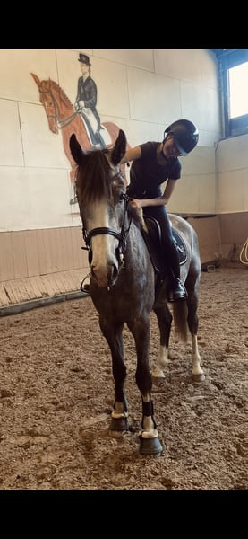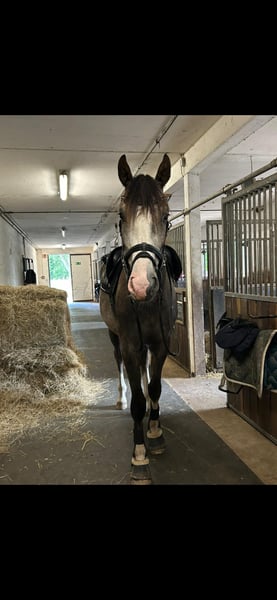 Due to health reasons, I am seeking a suitable new home for my 4-year-old gelding, "Call me Casper" (approximately 17.8 hh, sired by Clarcon × Polypur). Casper has been gently backed and has had regular breaks to process and consolidate his training. He masters all three basic gaits confidently, is easy to ride, motivated, and eager to work. Flying changes are already present but still under development. He is familiar with both indoor and outdoor arenas and reliably goes out alone or in a group, showing himself to be calm and uncomplicated in the terrain. Casper is also fearless in traffic. He is very pleasant in handling: he is well-behaved and uncomplicated when it comes to the farrier, loading, and traveling in the trailer. A TÜV certificate from February 2025, including X-rays (unremarkable), is available and can be renewed at the new owner’s expense. Due to his young age, Casper is not suitable for beginner riders. I am looking for a home where he can be further developed in an age-appropriate manner without being overtaxed. He is familiar with both box and open stall housing and gets along well with mares and geldings. In early 2026, Casper had to undergo an operation due to an unexplained colic. The surgery was successful with no complications, he has recovered very well, and he is currently in the gentle process of re-initiating training.