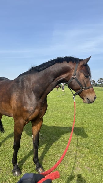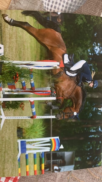 Zum Verkauf steht der 7-jährige Wallach Courage. Dieser Bildhübsche Wallach überzeugt durch seine guten Grundgangarten, seine gute Rittigkeit und sein Vermögen am Sprung. Courage hat Turniererfahrungen sowohl im Springen als auch in der Dressur wobei das Springen definitiv seine Leidenschaft ist. Er ist super im Umgang, geht alleine oder in der Gruppe in den Wald und ist Schmiede- und Verladefromm. Vor allem mit seiner Sprungqualität kann er überzeugen und bekam in der Vergangenheit immer Gute Noten in den Springpferdeprüfungen. Am Sprung ist er sehr Vorsichtig und will keine Fehler machen. Wir wünschen uns für ihn ein 5-Sterne Zuhause wo er weiter gefördert werden kann. Bei Interesse oder für weitere Informationen stehe ich gerne zur Verfügung unter 0173-8022020.