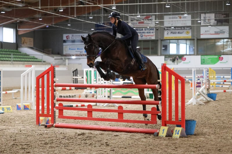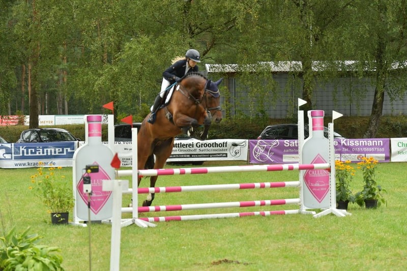Se ofrece a la venta un caballo de 7 años, el potro Courage. Este hermoso caballo impresiona por su buen paso básico, su facilidad para montar y su talento en los saltos. Courage tiene experiencia en competición tanto en salto como en doma, aunque sin duda su pasión son los saltos. Es muy fácil de manejar, va solo o en grupo al bosque, y es respetuoso con la herradura y el remolque. Sobre todo, destaca por su calidad en el salto, habiendo recibido siempre buenas calificaciones en las pruebas de caballos de salto. Es muy cauteloso en los saltos y quiere evitar cometer errores. Buscamos para él un hogar de cinco estrellas donde pueda seguir desarrollándose. Si está interesado o desea más información, no dude en contactarme en el 0173-8022020.
