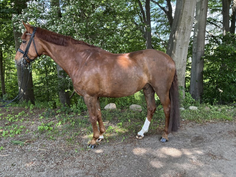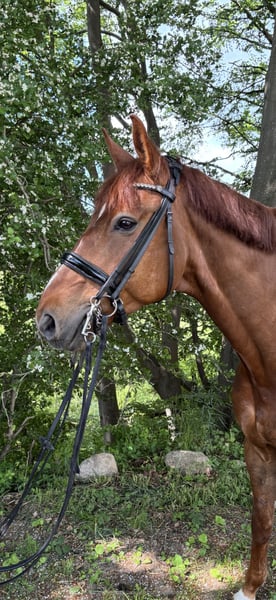 Camillo is a 9-year-old Mecklenburg gelding with a height of 170 cm and a shining chestnut coat. He has already won dressage competitions at the L level and is ready to be presented in his first M level dressage tests at competitions. In addition to his reliability in lessons, Camillo is always well-behaved and absolutely suitable for amateurs. He shows a lot of joy in jumping alongside his dressage work and is currently being trained weekly in this discipline. He is kept in a box and currently spends half the day in a herd on pasture. Camillo is being sold on behalf of the owner and for personal reasons. All equipment, including fitted saddles, can be purchased additionally. If you have any further questions or are interested, please feel free to contact us. Inquiries should be made exclusively by phone: 01731926492 (also available via WhatsApp).