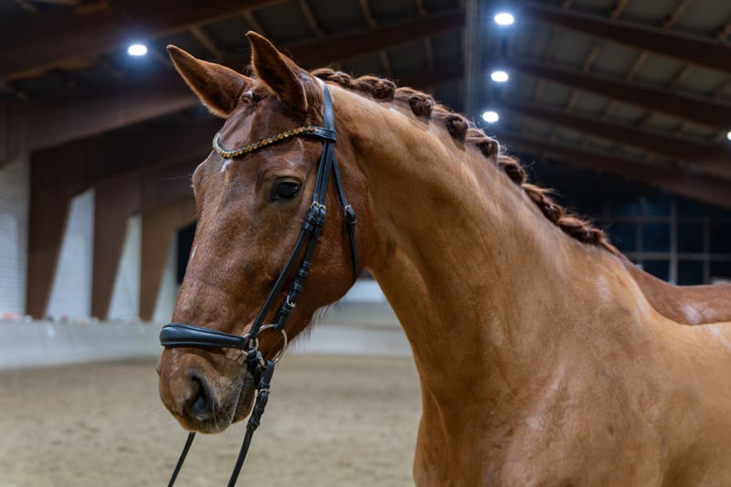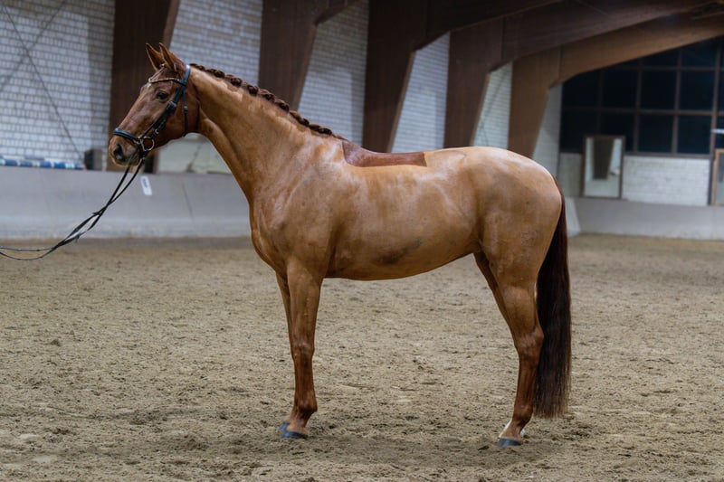 For sale is Balvenie, a 10-year-old chestnut mare. Balvenie is competing up to medium-level dressage on double bridle. She has significant potential for advanced classes. She has already begun training in S-class movements, including series changes up to two-tempi changes (not yet always perfectly executed). Her most notable feature is her lively trot, with a strong aptitude for piaffe and passage. In show jumping, she also impresses with placings up to A-class, although she has not been further developed in this discipline. Additionally, Balvenie reliably goes out on trail rides, both alone and in groups. She is forgiving and gentle, even with younger or less experienced riders. As a foal, she was awarded a premium, making her also an interesting prospect for breeding. In daily handling, she is very straightforward: she is farrier-friendly, loading-friendly, calm at the vet, and overall very gentle to handle. She is compatible with mares and geldings in our herd. No vices such as cribbing or weaving are known. Balvenie is an honest, well-trained mare with excellent prospects for an ambitious dressage rider. A breeding certificate from 2025 is available. Video to follow! For serious inquiries, Balvenie can be ridden in a test ride by appointment. Mobile: 0173/4619382 (Mon-Fri from 3 pm, available all day on weekends)