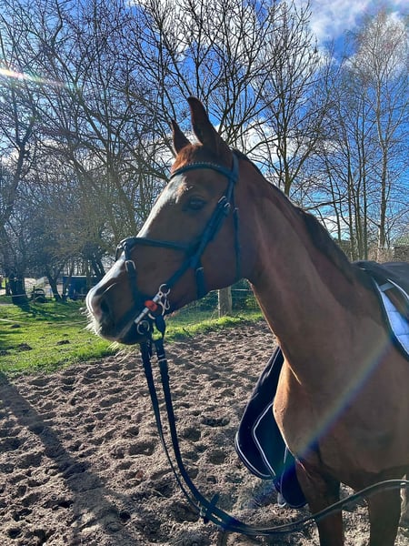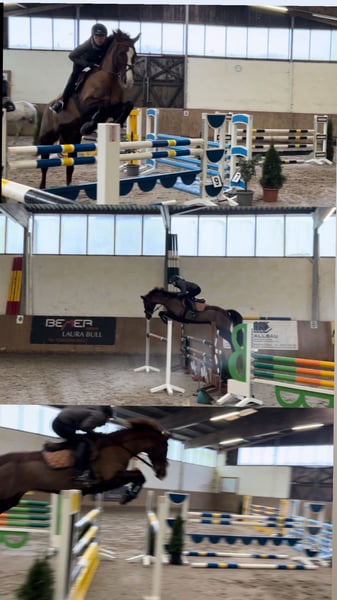 Aufgrund von Umorientierung im Reitsport verkaufen wir unsere Mecklenburger-Stute Donna. Donna verfügt über eine sehr gute, gleichmäßige Sprungtechnik, wodurch sie vor allem in Stil-Springen punktet. Weiterhin beherrscht sie einen sicheren Außengalopp und fliegende Wechsel. Donna hat ein ansprechendes Go, ist jedoch immer händelbar. Sie wurde ausschließlich von Amateuren/Jugendlichen geritten. Für Reitanfänger ist sie aufgrund ihres ausgeprägten Temperaments nicht geeignet. Wir können sie uns gut im A-L Bereich für Jugendliche ab 14 Jahren (je nach Können auch schon vorher) oder Amateure mit Turnierambitionen vorstellen. Donna ist absolut unerschrocken und interessiert sich nicht für Umweltreize. Sie springt alles von Wassergraben, Mauer bis hin zu jeglichen Unterstellern. Im Training springt Donna auch gut einen M-Parcours, für eine Turnierteilnahme auf diesem Niveau fehlen mir jedoch die Nerven. Donna wird nicht als Vielseitigkeitspferd verkauft, da sie in der Dressur, insbesondere im Schritt zu zappelig wird. Die Stute ist nur bedingt herdenverträglich und hat eine Haferallergie, welche bei entsprechender Handhabung keine größeren Probleme verursacht. Weitere Informationen und Videos auf Nachfrage. Kontakt gerne über WhatsApp oder telefonisch unter +0049 1749431491.