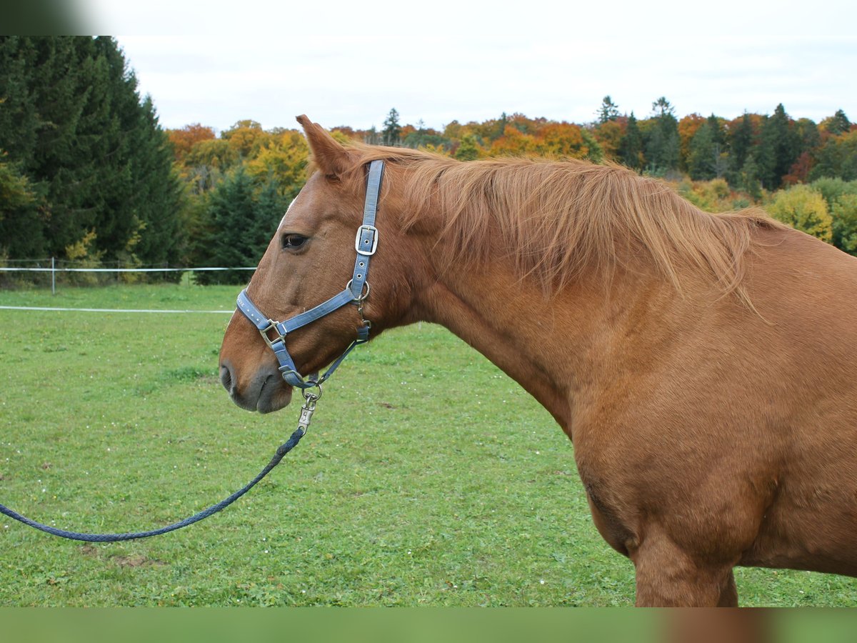 Chriwen – elegante Fuchsstute mit feinem Wesen (Contender x Donnerwetter) Zum Verkauf steht unsere Stute Chriwen, geboren am 18.04.2009, ca. 1,64 m groß. Sie ist eine hübsche, feinfühlige Fuchsstute mit bester Abstammung und einem großen Herz. Chriwen ist sensibel, zuverlässig und immer bemüht, es ihrem Reiter recht zu machen. Sie hat Temperament, bleibt aber händelbar und gelassen – auch nach Pausen. Ausgebildet bis A-Niveau und 5jährig auf Turnieren gestartet. Nach einer Hufrehe im Februar letzten Jahres wurde sie im Frühling wieder angeritten, steht aber seit Juni wegen meines Schlaganfalls erneut in Pause. Sie sucht nun einen liebevollen Platz, wo sie mit Gefühl weiter aufgebaut und gefördert wird. Weitere Infos gern auf Anfrage – nur in gute Hände abzugeben.