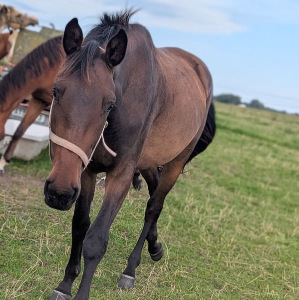 **Sales Advertisement: Mecklenburg Warmblood Mare** For sale is a promising Mecklenburg Warmblood mare, born in 2023. She impresses with her elegant dark brown coat color and has an estimated final height of 168 cm. The mare comes from the first hand and was bred by me. Her friendly nature and willingness to learn already set her apart. She is well-socialized, behaves well in handling, and has already gained initial experience in groundwork. If you are interested or need further information, please feel free to contact me. Videos and additional pictures can be sent upon request.