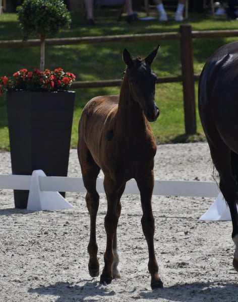 Świat stoi otworem przed tą dobrze rozwijającą się młodą damą. Wyposażona w mnóstwo ruchu oraz szykowny i uroczy charakter, można się w niej zakochać. Mając w rodowodzie Totilasa, można mieć wiele nadziei. Ten źrebak został uhonorowany elitarną plakietką na czempionatach. Szukamy dla niej miłego domu na przyszłość. Prosimy tylko o poważne zapytania.