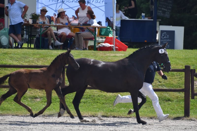Dieser gut in der Entwicklung stehenden jungen Dame steht die Welt offen. Mit viel Bewegung ausgestattet und Schick und Scharm kann man sich nur verlieben. Mit Totilas in der Ahnentafel kann man auf viel hoffen. Dieses Fohlen wurde mit einer Eliteplakette beim Championat ausgezeichnet. Wir wünschen uns für Ihre Zukunft ein schönes Zuhause. Bitte nur ernsthafte Anfragen.