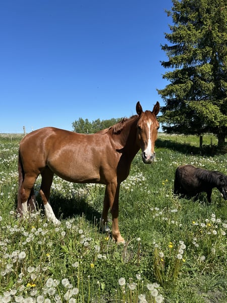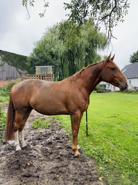For sale is a well-socialized 7-year-old Mecklenburg mare, sired by Vagabond out of a Lucian mare. We purchased her as a foal, and she has been raised with us in a pasture-based environment, with 24/7 access to hay and plenty of turnout. At nearly four years old, she was backed and has since been lightly ridden for leisure. Due to various circumstances (small child, self-sufficient lifestyle, weather conditions, no riding arena, etc.), she has been worked sporadically over the past few years. Unfortunately, she has developed a saddle refusal and is not currently in training, so she is not being sold as a riding horse and needs to be re-educated. (More details can be provided in a personal conversation.) Therefore, a trial ride is not possible at this time. She enjoys work and movement of all kinds. However, since we are no longer able to give her the attention she deserves and have no sporting ambitions left, we are reluctantly offering her to someone who wishes to train, challenge, and develop a high-quality, unspoiled mare. Whether dressage, jumping, or eventing – everything is possible with her. As she thrives best in a pasture-based environment, we prefer her future home to provide this type of management. Ideally, as a family horse with gentle, attentive people who can give her the time she needs to rebuild trust and confidence. She is barefoot, well-behaved in handling, and cooperative with the farrier. Since we do not want to completely give up riding, we are open to exchanging her for an older, absolutely reliable, and trail-sure horse. Serious inquiries are welcome. I am happy to discuss further details personally. No installment payments, no leasing, and she will not be given away for free. :) Price is negotiable.