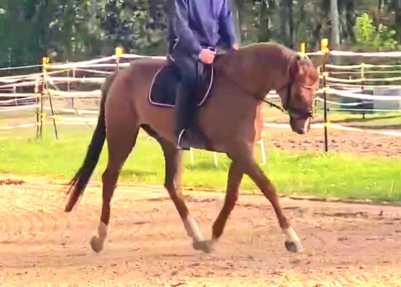 Piękna klacz fuksjowa Bardzo spokojna, także na terenach Z dużym potencjałem do ujeżdżenia i skoków Zdrowa.