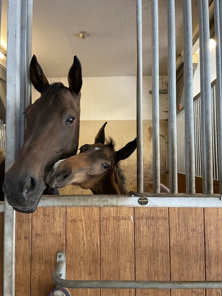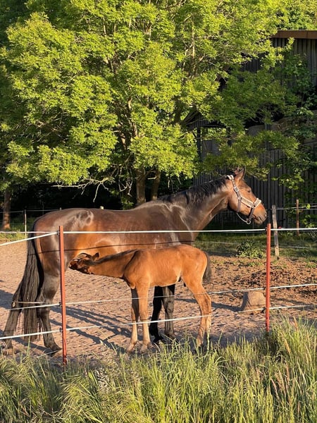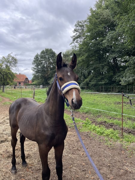 "Calle" steht ab sofort zum Verkauf, da wir leider unseren Bestand verkleinern müssen. Er ist am 17. April 2025 geboren und stammt ab von Carlo (Chacco-Blue x Capriol) x Canturat (Canturo x Prinz Pilot). Demzufolge ein vielversprechender Nachwuchs für den Springsport! Calle ist ein sehr langbeiniges, agiles und selbstbewusstes Fohlen. Aufgrund seiner großen Galoppade sowie seines Mutes kann ich ihn mir auch in der Vielseitigkeit zukünftig vorstellen. Er steht bei uns nur nachts in einer großen Box mit seiner Mutter, ansonsten stehen die beiden ganztägig auf einer Koppel mit anderen Artgenossen nebenan. Des Weiteren kann er das Fohlen-ABC, kennt den Schmied und ist dabei sehr artig. Der "kleine" Mann wird mal sehr groß, mindestens 170 cm Stockmaß, wenn nicht sogar in Richtung 180 cm. Also auch für große Reiter*innen interessant! Am besten wäre es, wenn er in bereits Jungpferde-erfahrene Hände kommt, da er wie schon erwähnt sehr selbstbewusst ist und manchmal eben etwas frech sein kann. Trotzdem liebt er Kuscheleinheiten und gekrauelt zu werden! Calle darf ab Oktober ausziehen und sein Leben mit Gleichaltrigen genießen. Ein Aufzuchtplatz hier in der Nähe ist bereits reserviert. Auf Wunsch kann dieser auch bei Kauf in Anspruch genommen werden. Diese Anzeige habe ich im Auftrag erstellt, also bei ernsthaftem Interesse bitte bei +49 176 30143418 melden!