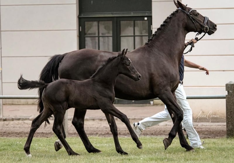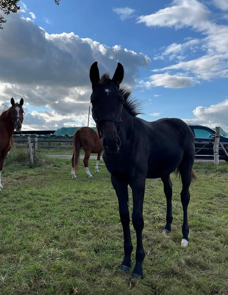 Secrets Love est notre magnifique poulain stallion, qui cherche désormais un nouveau foyer. Son pedigree, Secrets Star × D'Olympic, ne passe pas inaperçu, tout comme son corps noble, associé à ses mouvements fins et élégants. Lors du foal show 2024 à Redefin, il a conquis tous les spectateurs et a remporté la première place chez les hongres avec des notes de 9 pour le type, 8,5 pour l’extérieur et 9 pour le mouvement. Il s’est également qualifié pour le championnat des poulains à Groß Viegeln, où il a été classé comme bon poulain et a obtenu le titre de poulain d’élite. Il se trouve actuellement sur un paddock réservé aux hongres, profitant pleinement de sa vie avec ses compagnons. Il est vif, curieux, affectueux et désireux d’apprendre, toutes qualités que l’on peut attendre d’un cheval. Il connaît déjà l’alphabet du poulain et aborde tout sans problème.