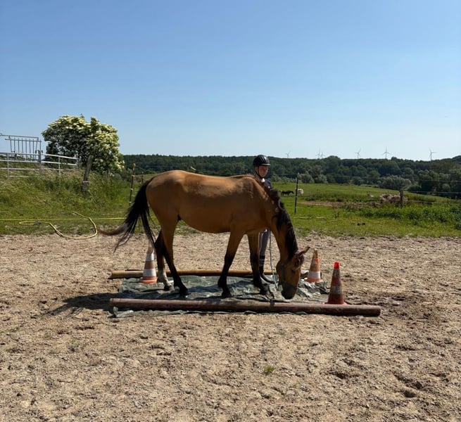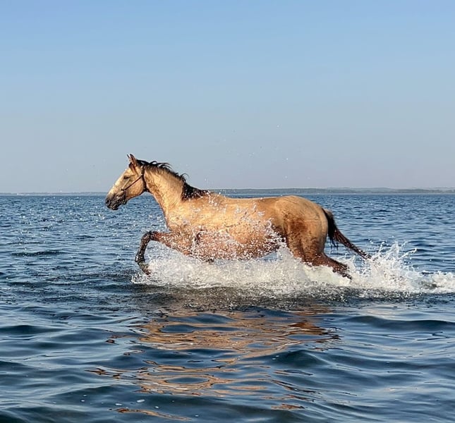 Mecklenburg Warmblood Stallion for Sale – Buckskin, Born in 2022 For sale is a promising Mecklenburg Warmblood stallion, born in 2022. With his striking buckskin coat and a height of 16.1 hh, he combines elegance and strength. The young stallion already demonstrates promising jumping talent and is ideal for an ambitious rider seeking a reliable prospect for show jumping. He has been well-handled, is friendly in temperament, and shows a promising development. Please feel free to contact me for more information or to arrange a viewing.