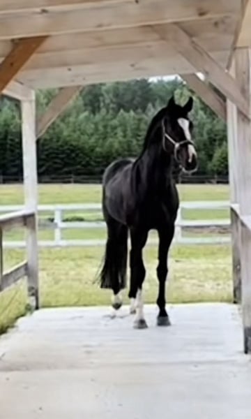 Piękny ogier z ogromnym potencjałem bierze udział w zawodach z dobrymi wynikami na poziomie 130cm , bardzo ładny ruch , wyjątkowo urodziwy i grzeczny