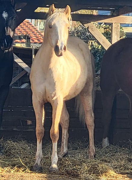 **Verkaufsanzeige: Arabisches Partbred – Palomino-Wallach, geb. 2024, 154 cm** Zum Verkauf steht ein vielversprechender arabisches Partbred-Wallach, geboren im April 2024 aus einer ägyptischen Vollblutstute und einem Partbred Hengst. Malik ist in einer gemischten Herde in Offenstall- bzw. im Sommer Weidehaltung aufgewachsen. Er gibt brav Hufe, lässt sich gerne ausgiebig putzen, ist altersgemäs erzogen, gesund, regelmäßig entwurmt und frei von bekannten Krankheiten. Wir wünschen uns für ihn ein zu Hause mit Weide- und Herdenhaltung. Platz vor Preis. Bei Interesse gern mehr per Telefon.