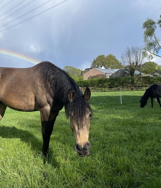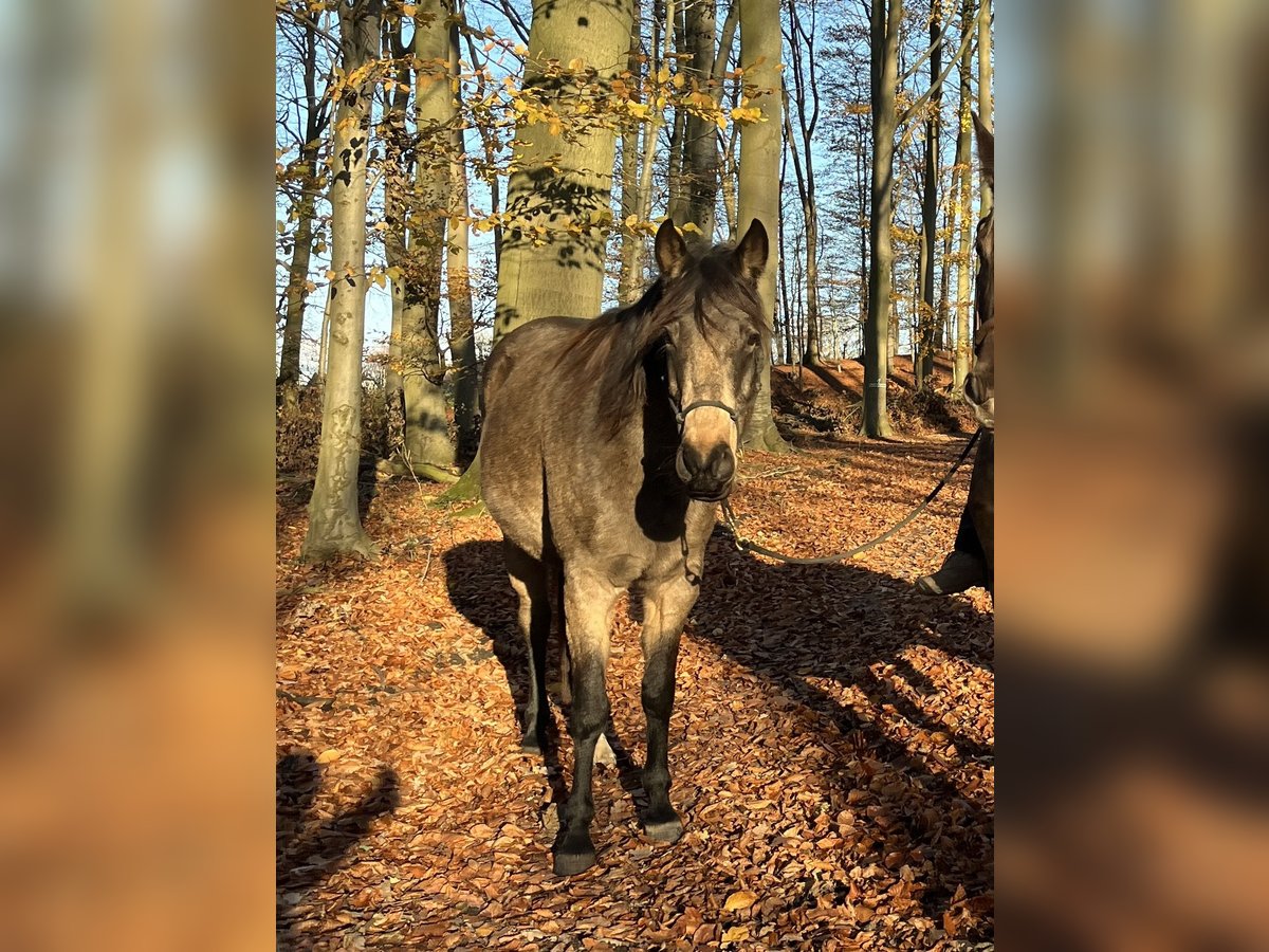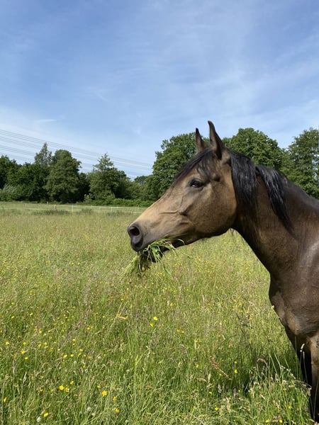 If everything fits, I am offering my 9-year-old part-bred Arabian mare in buckskin color for sale. She is a very refined horse, and I have only ridden her bitless so far. We have done a lot of groundwork and natural horsemanship. Otherwise, we mainly rode in the outdoors for leisure. I have also used her occasionally for therapeutic work. She can be very relaxed, but also as typical for Arabian horses, spirited and energetic. She also has the "turbo gait," meaning she is very fast and enjoys moving. She has always been kept in an open stall with me, and I would like this to continue for her. However, she needs a secure dry shelter, as she tends to be lower in the herd hierarchy and does not like standing in the rain. Alternatively, a paddock-box at night and pasture during the day would also be suitable for her. She is barefoot (I put hoof boots on her for rides in front) and has no problem with her hooves being handled. She has been regularly vaccinated, dewormed, and had her teeth checked annually. She also receives osteopathic treatment once or twice a year. Due to her generally high body tension, I occasionally give her small massages while grooming. Even if she can get quite lively, she is always very manageable on a long lead rope. Most recently, she was in a mare herd, but she is also familiar with mixed herds. She is not a heavy weight carrier; I would say she can comfortably carry up to 70 kg. I am only placing her in the best hands – this is not an emergency sale. She is also likely to pass on many different color genes. The last picture shows her sire, Paintabian "Shicco Ibn Shai." I have a specially fitted Deuber Jerez saddle in size S2 (Bückeburg model) for her, which can be purchased separately.