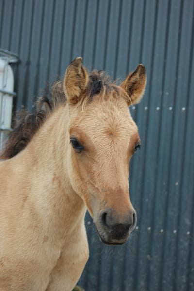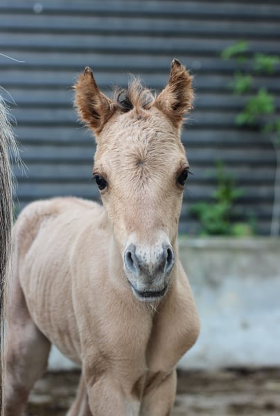 Der dunkle Fohlen heißt Djuna und ist die Tochter von Kalla, einer Fjordpferdestute von Anton. Der Vater ist EA Jameel, ein schwarzer arabischer Vollbluthengst. Djuna besitzt vollständige NRPS-Papiere, ist kräftig gebaut und bewegt sich wunderbar. Sie wird etwa 1,45 m groß werden und ist durch ihre breite Fjord-typische Konstitution auch als zukünftiges Reitpferd für Erwachsene geeignet. Da ihr Vater schwarz ist, kann Djuna später auch schwarze oder Grullo-Fohlen bekommen. Das helle Fohlen heißt Doebai, ihre Mutter ist Baika, meine kleine (1,40 m) Arabermischlingsstute. Der Vater ist der Fjordhengst Loebas. Doebai ist ein unglaublich liebes, sanftes Stutfohlen, umgänglich und sehr menschenbezogen. Sie besitzt NRPS B-Register-Papiere. Sie ist robust gebaut mit auffallend langen Beinen und wird deutlich größer als ihre Mutter, mindestens 1,45 m, und durch ihre Konstitution auch gut für Erwachsene geeignet. Doebai ist selbst wildfarben (Fuchs), ihre Mutter ist Grullo, sodass sie später ebenfalls Grullo-Fohlen bekommen kann. Es besteht die Möglichkeit, dass sie homozygot wildfarben ist. Die Mutter von Doebai könnte bei passendem Zuhause ebenfalls umziehen. Sie ist freizeitmäßig geritten, leicht im Umgang, wird problemlos tragend und ist eine liebevolle Mutter. Die Fohlen wachsen hier in einer Stutengruppe auf unserem Hof auf und haben dadurch schon einiges erlebt. Sie leben 24/7 draußen, sind kerngesund, an Kinder gewöhnt, kennen auch Traktoren und Gabelstapler und sind sozial in der Gruppe. Ab Februar können sie wir erwarten, wiraning sie dann 8-9 Monate alt sind, abgegeben werden. Die Mütter und die große Schwester von Djuna sind ebenfalls hier zu besichtigen. Ich stehe auch im Kontakt mit den bisherigen Fohlen dieser Stuten. Ein gutes Zuhause ist mir sehr wichtig! Ich verlange 2.500 Euro pro Fohlen. Wenn sie gemeinsam ein gutes Zuhause finden, lässt sich darüber noch verhandeln. Außerdem habe ich noch ein Welsh A-Stutfohlen (siehe letzte Fotos) zur Verfügung.