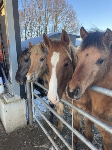The dark foal is named Djuna and is the daughter of Kalla, a Fjord mare owned by Anton. Her sire is EA Jameel, a black Arabian purebred stallion. Djuna has full NRPS registration papers, is broadly built, and moves beautifully. She is expected to reach approximately 14.5 hands and could be a future riding horse for adults due to her strong Fjord-type conformation. Since her father is black, Djuna may also produce black or grullo foals later on. The lighter foal is Doebai, her mother is Baika, my small (about 14.0 hh) Arabian cross mare. Her sire is the Fjord stallion Loebas. Doebai is an incredibly sweet, gentle filly, easy to handle, and very human-oriented. She has NRPS B-register papers. She is solidly built with notably long legs and will grow significantly larger than her mother, likely over 14.5 hands, making her suitable for adult riders. Doebai is herself a wild dun (bay dun) and her mother is grullo, so she may also produce grullo foals later. She is possibly homozygous for the dun gene. Doebai’s mother could also be rehomed to the right family; she is used for recreational riding, easy to handle, becomes pregnant easily, and is a loving mother. The foals are raised in a mare herd here at our farm and have already experienced quite a bit. They live outdoors 24/7, are very healthy, accustomed to children, as well as forklifts and tractors, and are social within the group. They can be weaned and moved to a new home from February, at around 8-9 months of age. The mothers and Djuna’s older sister are also available for viewing, and I am in contact with previous foals from these mares. Finding a good home is very important to me! I am asking €2,500 per foal, and if they go to a good home together, there is some room for negotiation. Additionally, I have a Welsh A filly available (see last photos).