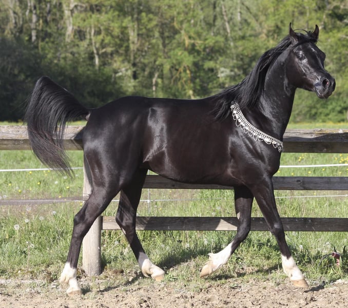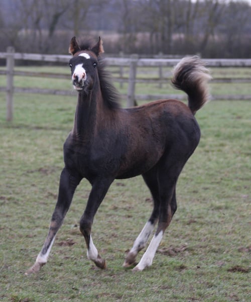 INCROYABLE pouliche demi sang arabe noire 2025 , 97% ar . vous cherchez une pouliche avec une tete extreme ,une robe des plus originale avec cette liste interrompue et ses balzanes atypiques , un top mental super bien manipulée , un petit cadeau de fin 2025 , elle sera sevrée à la fin du mois D avril un petit trésors à découvrir .photo 4 son père