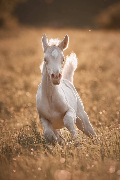 Esclusiva cavalla araba cremello