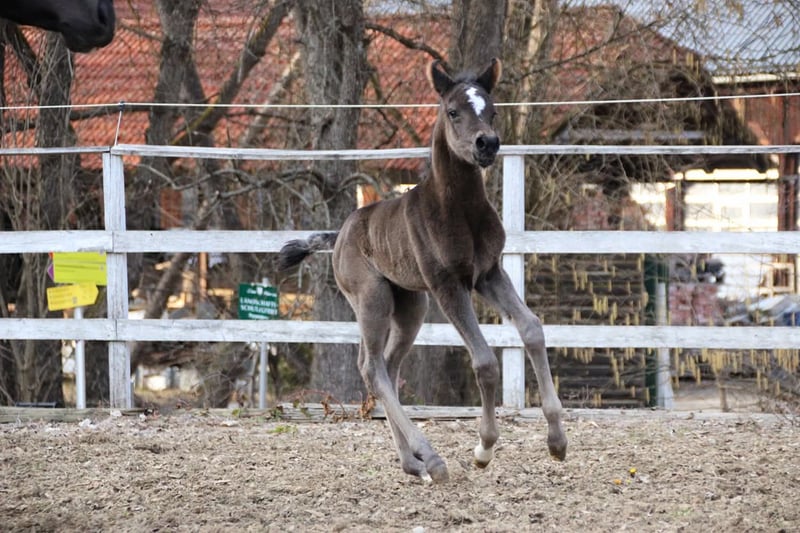 CWH Electra Sie wird Kohlraben schwarz und stammt vom Prämienhengst GP Touchof Dandi ab ihre Mutter ist CWH Karima ! Von dieser anpaarung bin ich nach wie vor begeistert da die Fohlen - Pferde absolut Menschen bezogen und einfach im Umgang sind ! CWH Electra wird regelmäßig Entwurmt und wächst gemeinsam mit anderen Fohlen und Stuten auf großen Wiesen auf Teilzahlung möglich