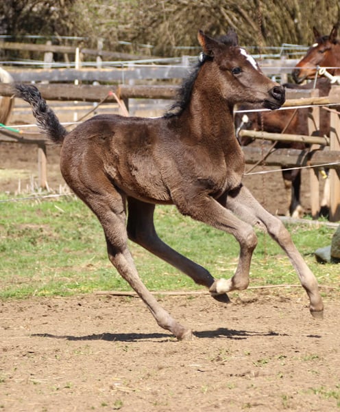 CWH Electra She is turning a beautiful dark bay and is sired by the premium stallion GP Touchof Dandi. Her dam is CWH Karima. I am still very enthusiastic about this pairing, as the foals and young horses are incredibly people-oriented and easy to handle. CWH Electra is regularly dewormed and grows up together with other foals and mares on large pastures. Installment payments possible.