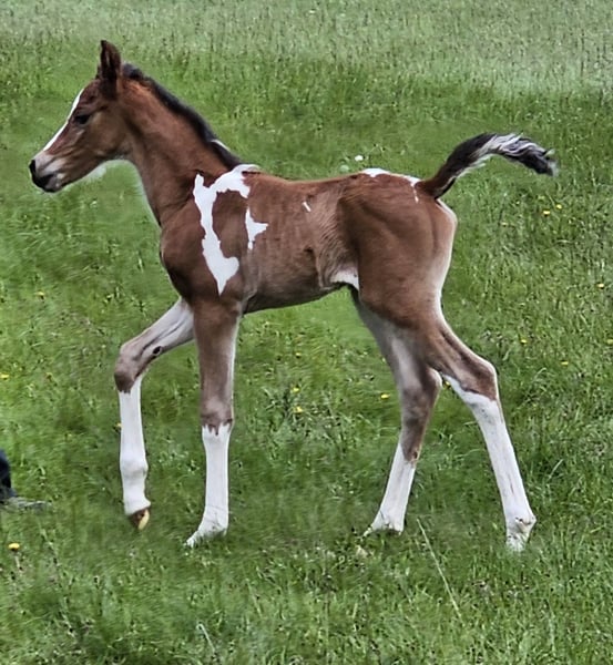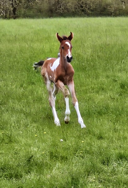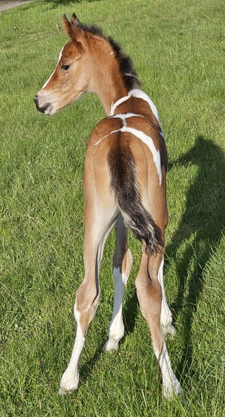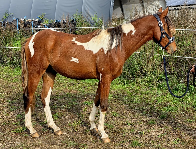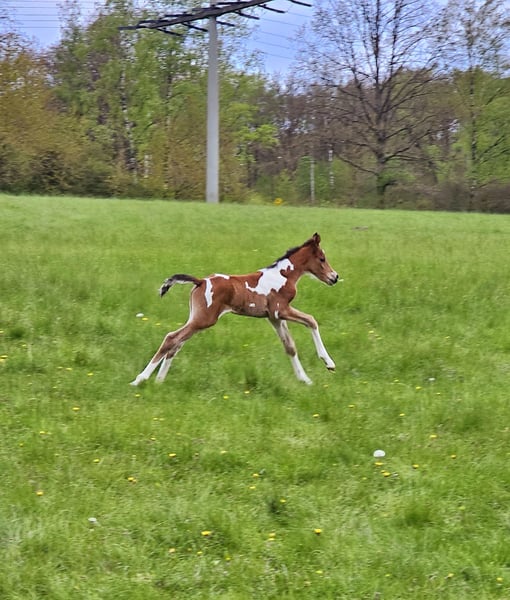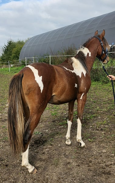 For sale is a promising young Arabian Partbred stallion, born in 2024, aged 1.5 years. A versatile talent suitable for all disciplines! Standing currently at 14.6 hh (expected final height around 15.3 hh), he combines elegance and agility in perfect harmony. His striking Tobiano coat pattern makes him a real eye-catcher and adds a unique charm. Namiro is well-socialized, with a friendly and balanced temperament. He grew up in a herd, is familiar with dogs, is gentle during hoof care, and easy to handle. This stallion is ideally suited for eventing and shows great potential for demanding sports. His friendly and open-minded nature makes him an excellent partner for ambitious riders who value quality and character. A space for his upbringing is available. He is only to be placed in the very best hands. If you are interested or would like more information, please feel free to contact me. A personal meeting is always possible!