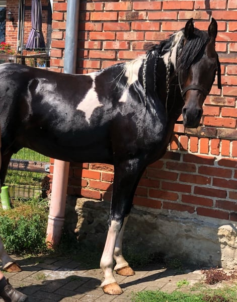 💕 Sweat Dream des Fonds 💕 😍😍😍😍😍😍😍😍😍😍😍 Pintabian hengst 99,7% ox Geboren op 1 april 2020 Bruin Tobiano heterozygoot 1,53 m schofthoogte Van HAB Dreamdancer zwart-wit Tobiano Uit Khadra des Fonds, Vollblutarabier, bruin ❤❤❤❤❤❤❤❤❤❤❤ Mr. D zoekt een nieuwe uitdaging. Onze prachtige hengst zoekt een plek waar hij verwend en gestimuleerd wordt. Hij heeft elke dag beweging nodig, beschikt over veel kracht en een geweldig bewegingsapparaat. Met zo'n hengst ben je altijd in de belangstelling. Hij is in alle drie de gangen gereden en heeft intensieve grondwerktraining genoten. Dekt via natuurlijk dekken. Staat in een open stal, maar kent ook een box, hoewel hij daar niet gelukkig is.