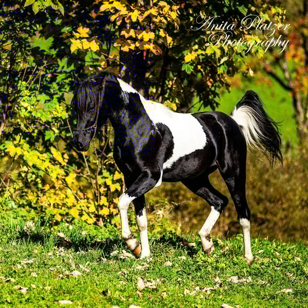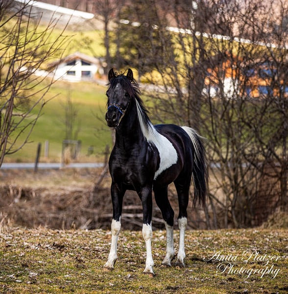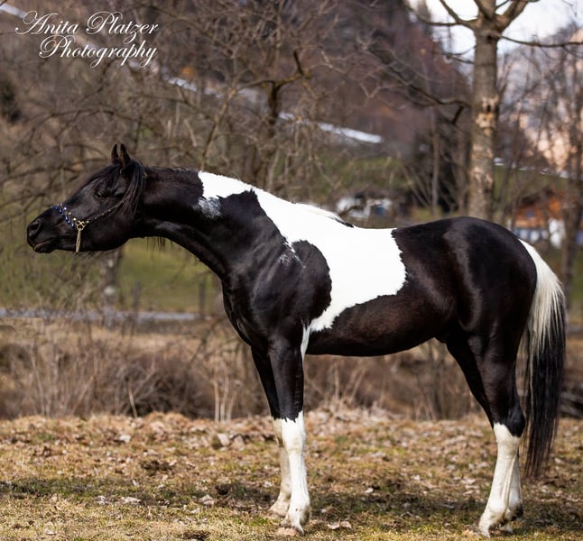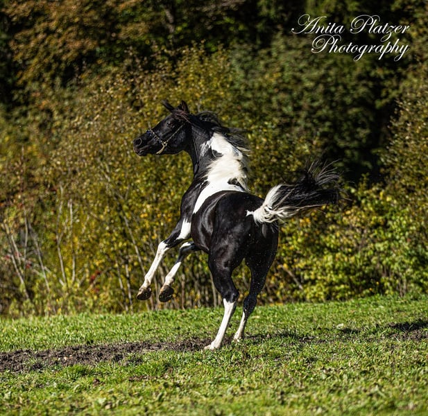 PLH Diago ibn JM Dschalil el Amir gekörter und Prämierter Deck Hengst. Der hübsche wurde in Österreich mit Höchstnote gekört und ist sogar Prämienhengst geworden. Er ist 2023 Vieze Champion als Fohlen geworden beim Fohlenchampionat in Stadl Paura. Diago ist ein Araberpinto mit 98,83 % VA Anteil ( Pintabian Producer) und ein Enkel Von Sauda Zahra Er ist Homozygot auf Rappe SCID, CA und LFS frei Geb. 13.03.2023