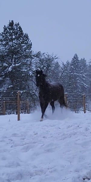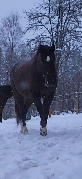 Max ist ein Polnisches Warmblut mit Trakehner und steht bei mir in Schweden. Leider muss ich für meinen Wallach Max ein neues Zuhause suchen. Es passt nicht mit meinen beiden anderen Pferden. Sie vertragen sich nicht gut mit ihm und das führt zu Stress. Max ist kein einfaches Pferd, ich habe ihn aus einem Schulbetrieb gekauft, da er dort immer gebockt hat. Sie haben ihn in einer Klinik untersucht, aber nichts gefunden. Ich vermute, dass er Magenschmerzen hatte. Diese bekomme ich nicht so gut in Griff aufgrund des Stresslevels. Er braucht jemanden, der sehr viel Geduld und Gelassenheit hat. Man muss mit ihm in kleinen Schritten arbeiten, ansonsten kann man wieder von vorne anfangen. Er ist sehr schnell gestresst. Er mag aber Menschen sehr gerne. Innen ist er sehr sensibel, nach außen hin manchmal ein kleiner Elefant. Er ist bis A-Dressur und A-Springen ausgebildet. Ich habe mit ihm bisher Equikinetik gemacht, Bodenarbeit, Longe, Cavaletti-Arbeit, Wippentraining angefangen. Ohne Sattel bin ich auch etwas geritten, das ging ganz gut. Platz vor Preis. Bei weiteren Fragen einfach melden.