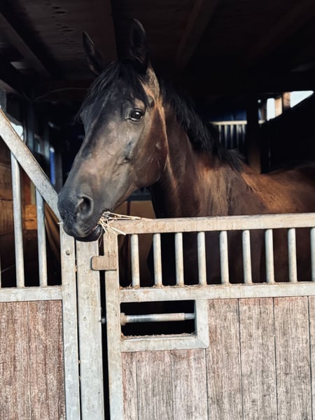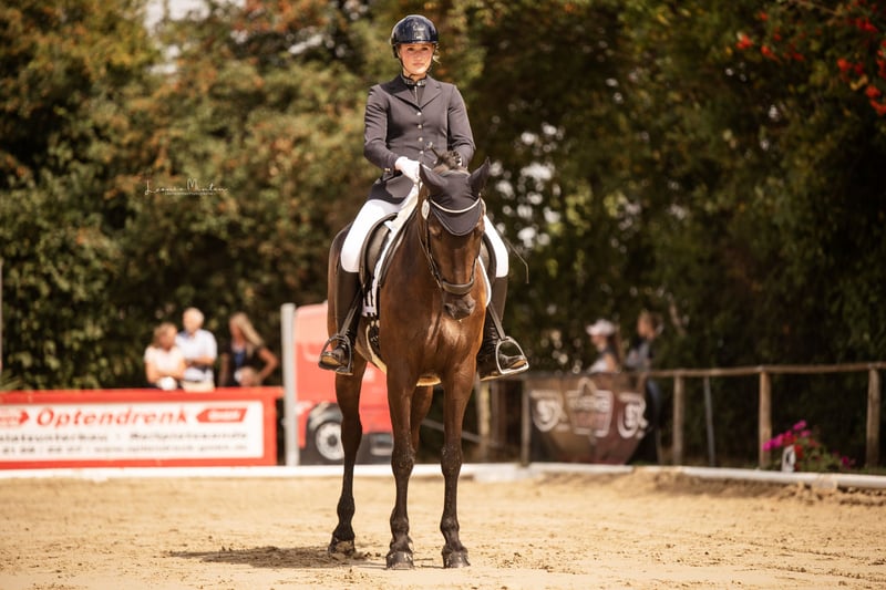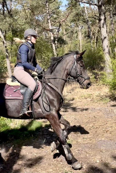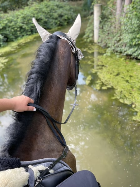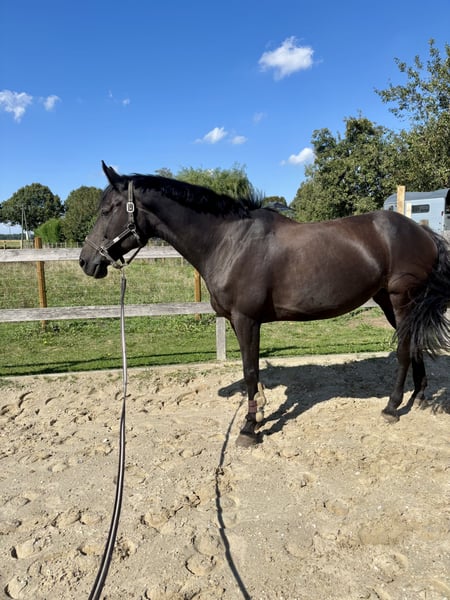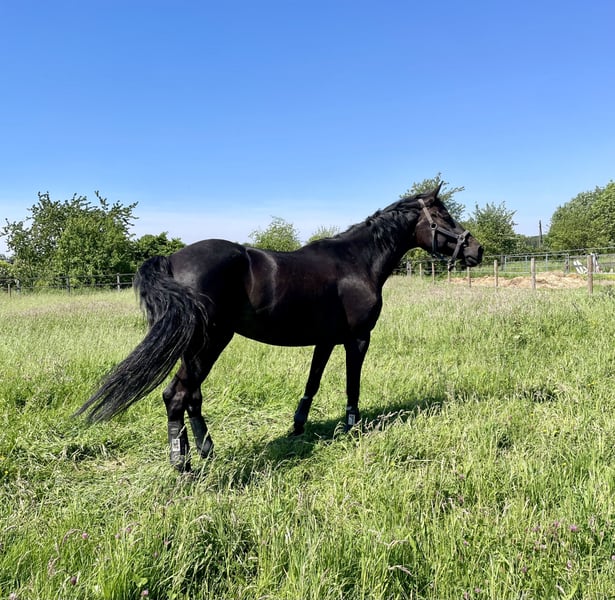 Polish Half-Bred Mare – ideal for, e.g., mother-child tandem For sale is my beautiful mare, Lemony. She is 12 years old and approximately 16.1 hh tall. Lemony has been with me since she was three years old. Together, I learned to ride, from my first trail rides to my riding diploma, my first competitions, and various training courses. She now also calmly rides with beginners in familiar surroundings, both free riding and lunging (photos and videos available). However, she is not a pure beginner’s horse, as she occasionally needs some encouragement, especially during lively rides (she can be calm, but if she hasn’t been ridden for a while, she’s very motivated), pole work, or jumping over a few obstacles, whether in the field or on the jumping course (she’s very motivated here too, especially after a break). Lemony has always had a close-set vertebrae in her back and osteoarthritis in her cervical spine. But I have always ridden her this way! I am reluctantly offering Lemony for sale because I want to further develop my riding skills and due to a change in our stable situation at home, where we will only keep geldings in the future. Unfortunately, she cannot be kept with geldings and must be with mares. Currently, she shares her herd with a retired mare and a Shetland pony, which works perfectly. She spends her days on pasture and paddock and is stabled at night. She handles her turnout well. I believe Lemony would be best suited for a mother-child tandem, where she can be motivated in a varied, health-preserving way without the pressure of competition (or maybe just for fun occasionally). Lemony has front shoes and is used to the farrier and loading. Please don’t hesitate to contact me with any questions! I have known this mare since she was three years old and can tell you everything about her from A to Z. A suitable home is very important to me. Best regards, Bianca and Lemony