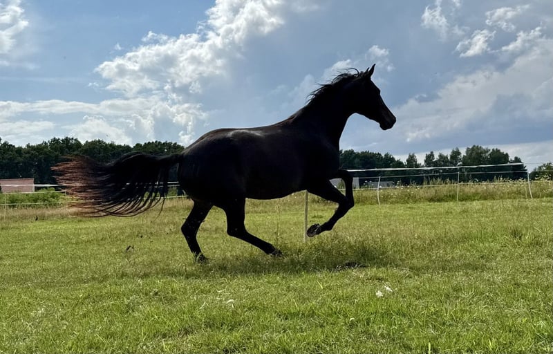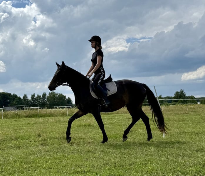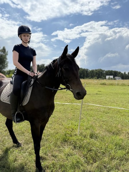 For sale: an exceptionally well-mannered and sociable Polish Warmblood (SP) mare by Morricone out of a Sir Europe mare. Santa is 4.5 years old and 153 cm tall. She would be an ideal horse for a well-riding child moving up from a pony or for a smaller rider (the rider in the photos is 168 cm tall). The mare is healthy and hardy, raised from a young age in free-range conditions among her peers. She is very easy to handle during all grooming and veterinary procedures and loads into a trailer without any issues. She has no bad habits or vices and makes excellent use of feed. In March, she had two chips surgically removed from her hock joints (she was never lame; the surgery was done purely as a preventive measure). Everything has healed properly, and we have recent X-rays taken at the end of June. Her spine and all other joints are in excellent condition. The X-rays can be sent for review to interested buyers. Also in March, her teeth were done. The horse is regularly vaccinated, trimmed, and dewormed. She was backed in July, but due to the owner’s demanding university studies, she returned to pasture in October. The sale is solely due to lack of time, which unfortunately means her potential is being wasted. Santa also enjoys jumping, so she would suit a versatile/all-round role. Price negotiable within reason. It is possible to organize an international transport in a reasonable price.