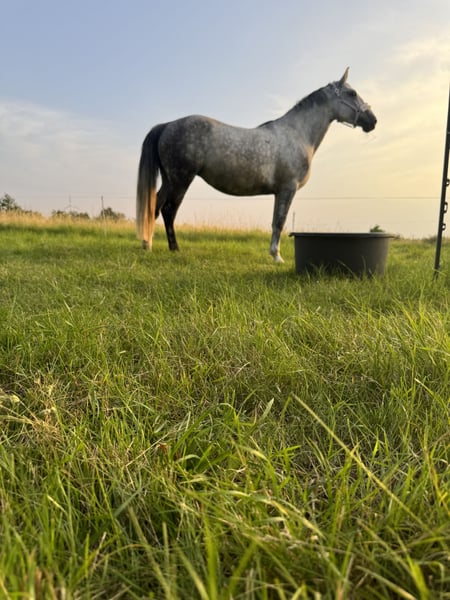 Schweren Herzens trenne ich mich von meiner Stute, da wir reiterlich leider nicht zueinander finden. Sie ist eine charakterstarke Stute und daher kein Anfängerpferd. Mit einem erfahrenen, konsequenten Reiter zeigt sie jedoch ihr Potenzial und arbeitet gut mit. Die tägliche Arbeit mit ihr macht sehr viel Spaß, und sie hat einen tollen, ehrlichen Charakter. Sie hat ein Stockmaß von 1,61m und ist 9 Jahre alt. Kleine Sprünge meistert sie zuverlässig dies konnte sie auf unserem Hofturnier unter Beweis stellen. Ausritte im Gelände macht sie alleine als auch mit anderen Pferden super mit. Sie kennt den Umgang mit Kindern und Hunden. Ich wünsche mir für sie einen passenden Platz mit erfahrener Bezugsperson, bei der sie weiter gefördert wird. Ihre Zähne wurden im November kontrolliert. Sie genießt regelmäßige Ostheopatie Behandlungen. Der Sattel kann mit erworben werden. Er wurde auch erst angepasst. Platz vor Preis! Bei ernsthaftem Interesse freue ich mich über eine Nachricht.