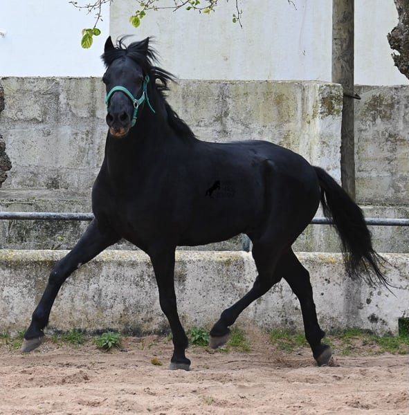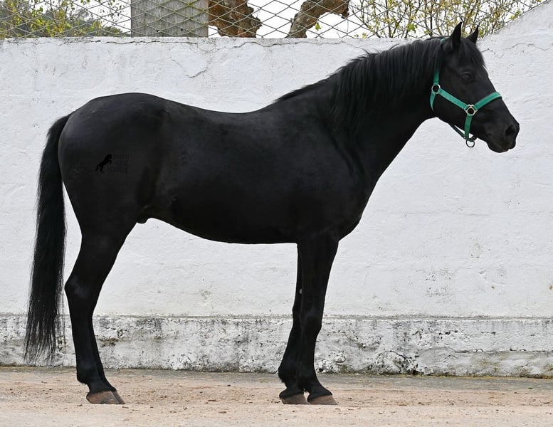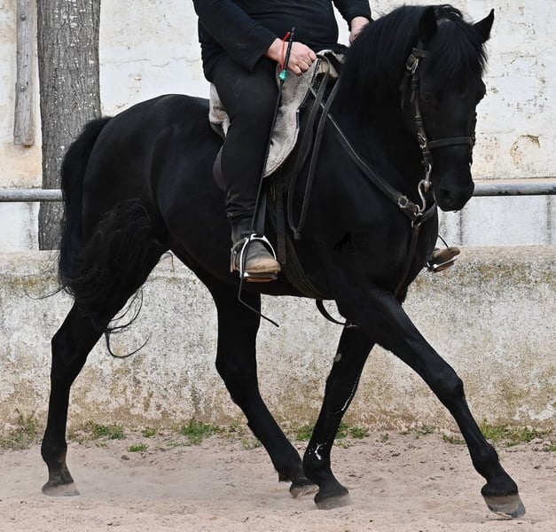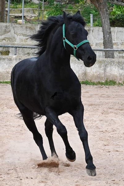 Dieser 2017 geborene, reinrassige Menorquinwallach, ist mit seinen 159cm Stockmaß, schön kompakt. Dieses kompakte Exterieur, lässt er besonders vor der Kutsche zur Geltung kommen, wo er sowohl einspännig, als auch mehrspännig gefahren wird! Er ist pechschwarz, ohne ein weißes Abzeichen und das macht ihn so richtig elegant als Fahrpferd. Sein Ohrenspiel zeigt, wie aufmerksam er ist und nicht nur auf die Zügelführung, sondern auch auf die Stimme des Fahrers, reagiert. Unterm Sattel ist er hauptsächlich im Gelände geritten, hat also nicht viel Ausbildung im Viereck was Lektionen betrifft, ist dafür aber ein ideales Freizeitpferd für alle, die gerne rausgehen oder selber noch ausbilden möchten, denn er wäre mit seinem Körperbau auch für die Working Equitation interessant. Im Umgang lässt er manchmal den Schelm durchblicken, ist aber absolut liebevoll dabei! Er geht problemlos barhuf, auch auf den felsigen Ausreitwegen Menorcas. Preis entsprechend der heutigen Kategorie des Menorquin, der vom Aussterben bedroht ist und eine Seltenheit! Sein Standort ist Menorca. Videos und Abstammung gerne auf Anfrage. Gerne organisiere ich vor Ort eine AKU, Beritt, Transport oder auch ihre Reise, sollten Sie persönlich zum Anschauen kommen. Details dazu gerne auf meiner Seite oder im Gespräch. Saludos aus Spanien
