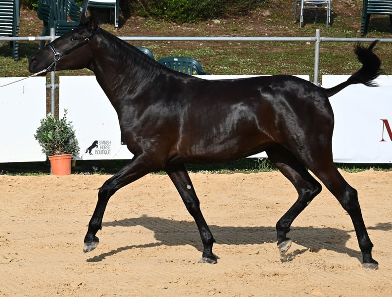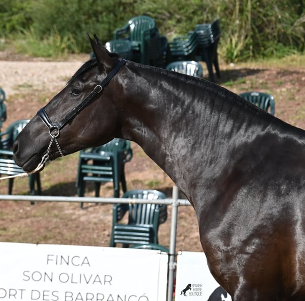 This 2023-born Menorquin mare is truly an exclusive representative of her breed from a top home! Her father is one of only 3 ELITE stallions of the breed, known for passing on good movement as well as size, and this young lady is expected to reach a final height of around 165cm! Her mother carries very old lines of the Menorquin, which are known for their endurance and hardworking nature. This jewel of a filly was presented at this year's breeding show of the Menorquin, and she is already well-acquainted with lunging in a halter, being in new places, is super easy to load (even in a double trailer when she has to enter second), knows hoof care, and of course the basics of grooming and bathing. She lives 24/7 in a robust environment on many hectares of land in a herd of mares of all ages, making her well-socialized and trained. The ideal upbringing! She also knows the stable, should she need to go inside. On her forehead, she has a star that she hides under her forelock. Traditionally Spanish, she is clipped as a mare, but of course, her mane will grow back if not cut further ;) Price according to quality. Videos & pedigree available upon request. Her location is Menorca. I would be happy to organize a foal vet check, transport, or your travel arrangements should you wish to come and see her in person. Details can be found on my page or in conversation. Greetings from Spain!