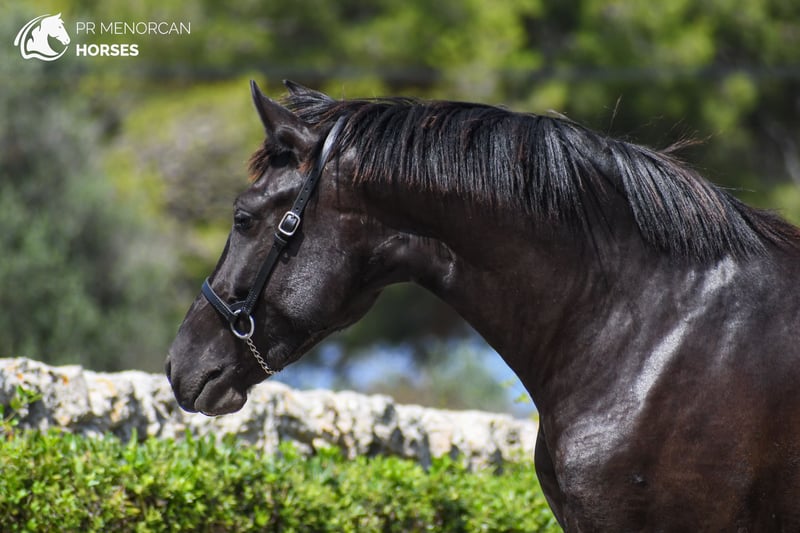 This lovely Pura Raza Menorquina filly, born in April 2022, could be yours! She’s completely black, and while she might be on the smaller side (currently around 150 cm, expected to reach 153 cm when fully mature), she more than makes up for it with her great movement, energy, and character. Coming from old, sportier Menorcan bloodlines, she could be an excellent choice for someone looking for a compact horse with talent for dressage, eventing, working equitation, or shows. Of course, like most Menorcan horses, she’d also make a fantastic partner for trail riding. As she is still young, she’s only had light training, ridden for about four weeks, with basic walk, trot, and canter established. She is now back in the field to continue growing and developing. She has a curious, sensitive, and energetic personality, a type that truly connects with her person once trust is built. Currently, she lives in a paddock with access to a shelter alongside other mares her age, enjoying her freedom to run, play, and learn herd manners naturally. You’re welcome to come visit her in person, or we can handle the entire purchase process online. 📋 Vet check available. 🚛 We organize all documentation and transport. 📍 Located in Menorca. 💬 DM us for more information and videos! Best regards,