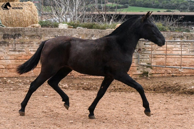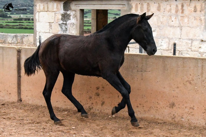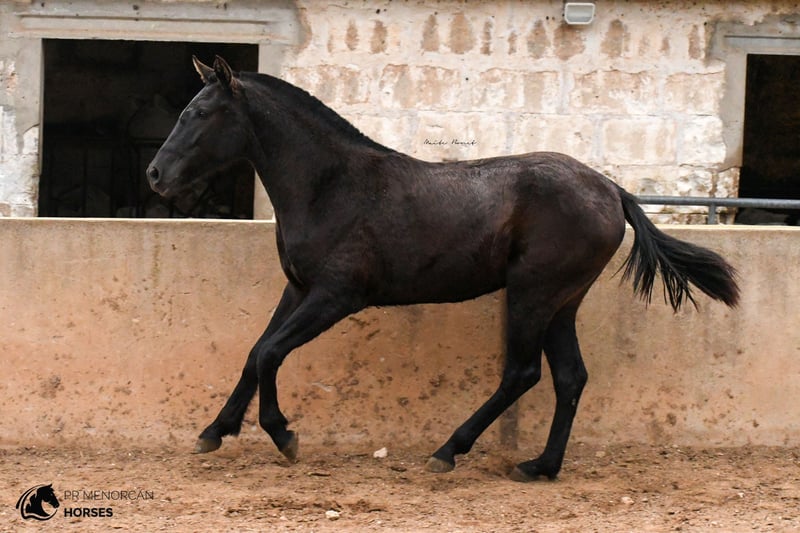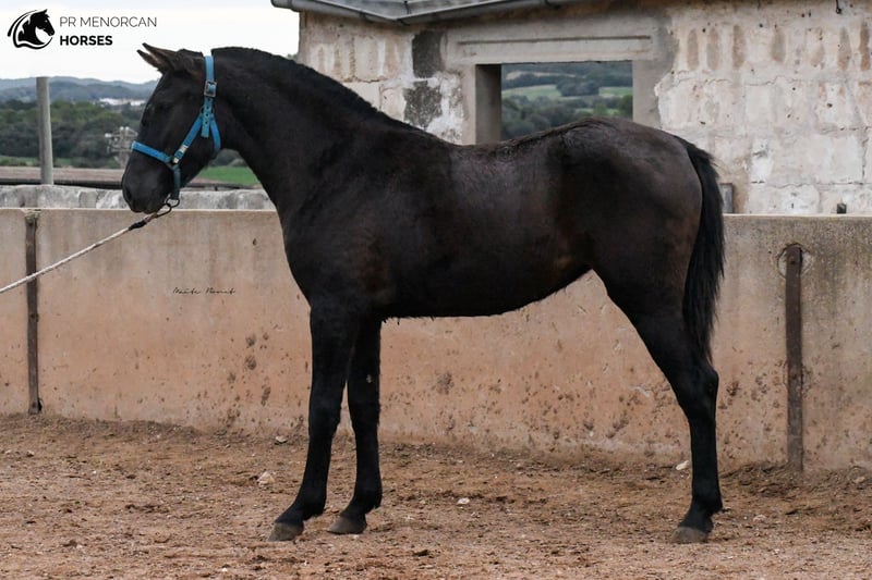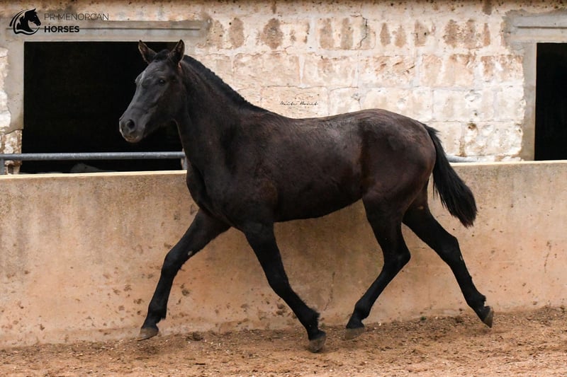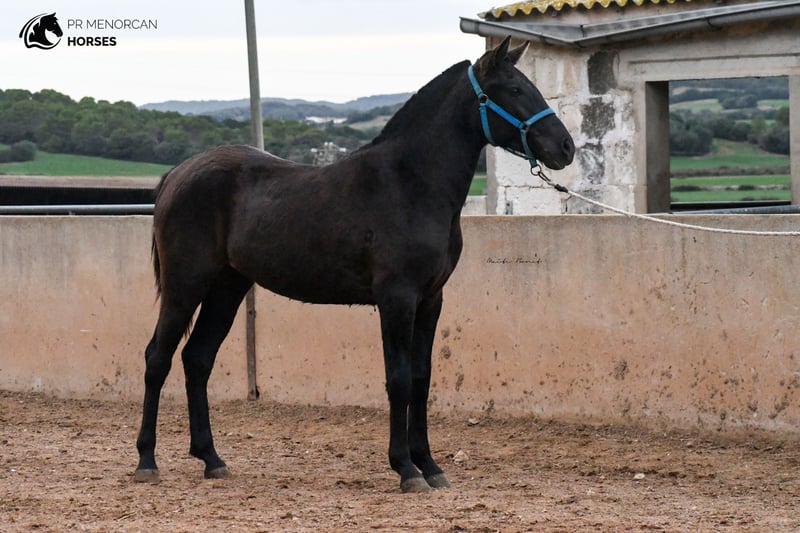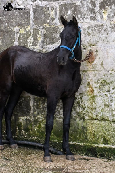 This beautiful Pura Raza Menorquina filly, born in May 2022, is looking for a new home. She is completely black, we estimate that she will be just under 160cm when she finishes growing. She is curious and playfull. She is used to people, she is always looking out for her older sister. The two live freely in the field along with other mares with their foals. Her father is descended from an ancient and well-known bloodline. She would be a good option as a leisure mare, but she also has potential for dressage, jumping, and as a trail horse and from 3 years old she could be assessed as a breeding mare. She is already prepared to travel, but if you prefer that she stay a few more months in Menorca, with other foals her age, that is also an option. Consult the different options with us. I can organize a veterinary examination, quarantine (if applicable) and transportation worldwide. Located in Menorca More information and videos by private message ;) Cheers!